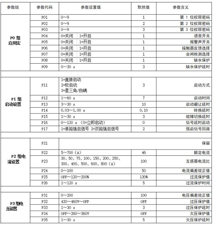 該參數定義:只針對星三角降壓/自耦降壓啟動方式的啟動時間(出廠默認為“7” )